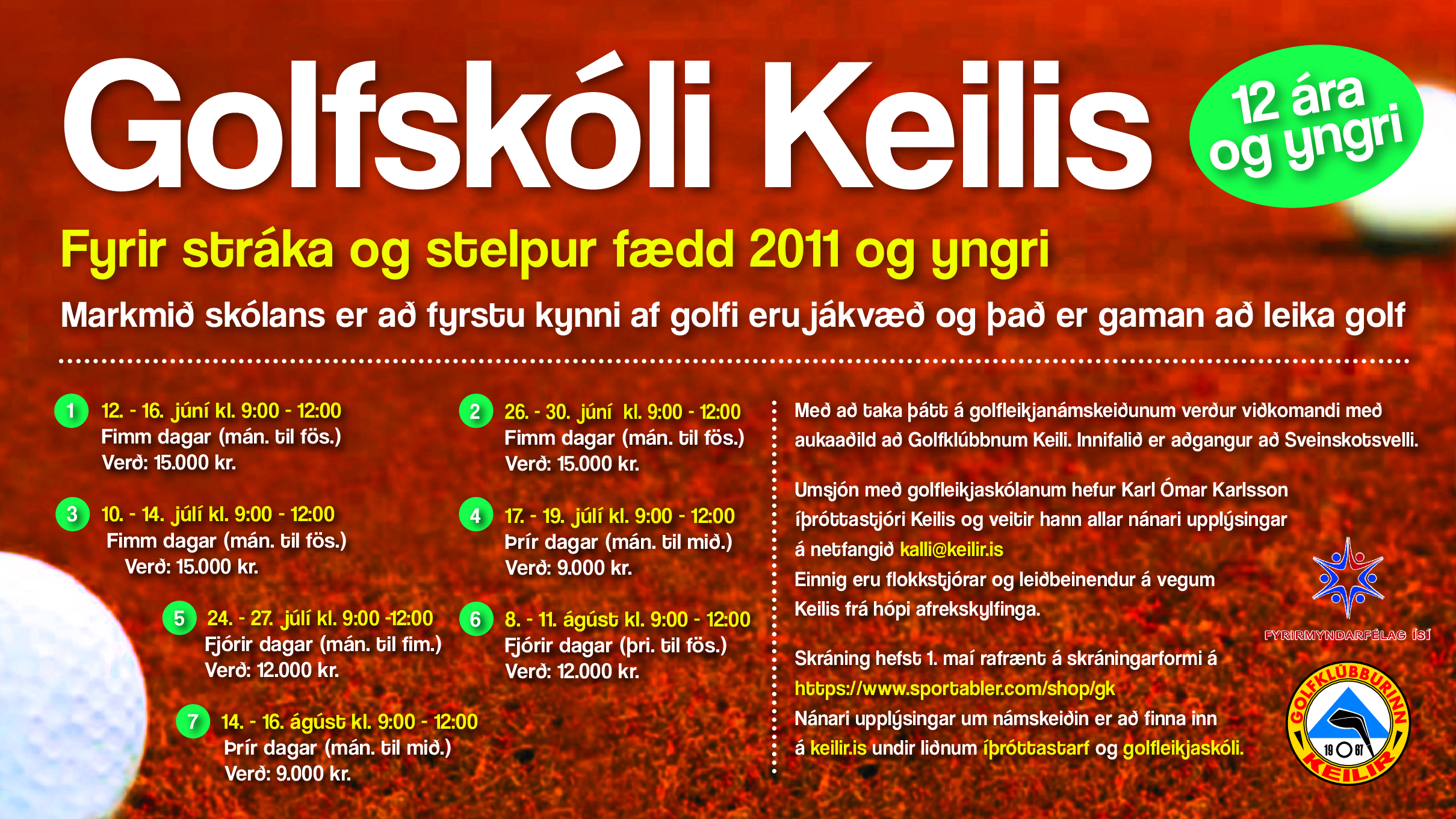 Golfskóli Keilis er fyrir allar stelpur og stráka á aldrinum 5 – 12 ára frá kl. 9:00 til 12:00