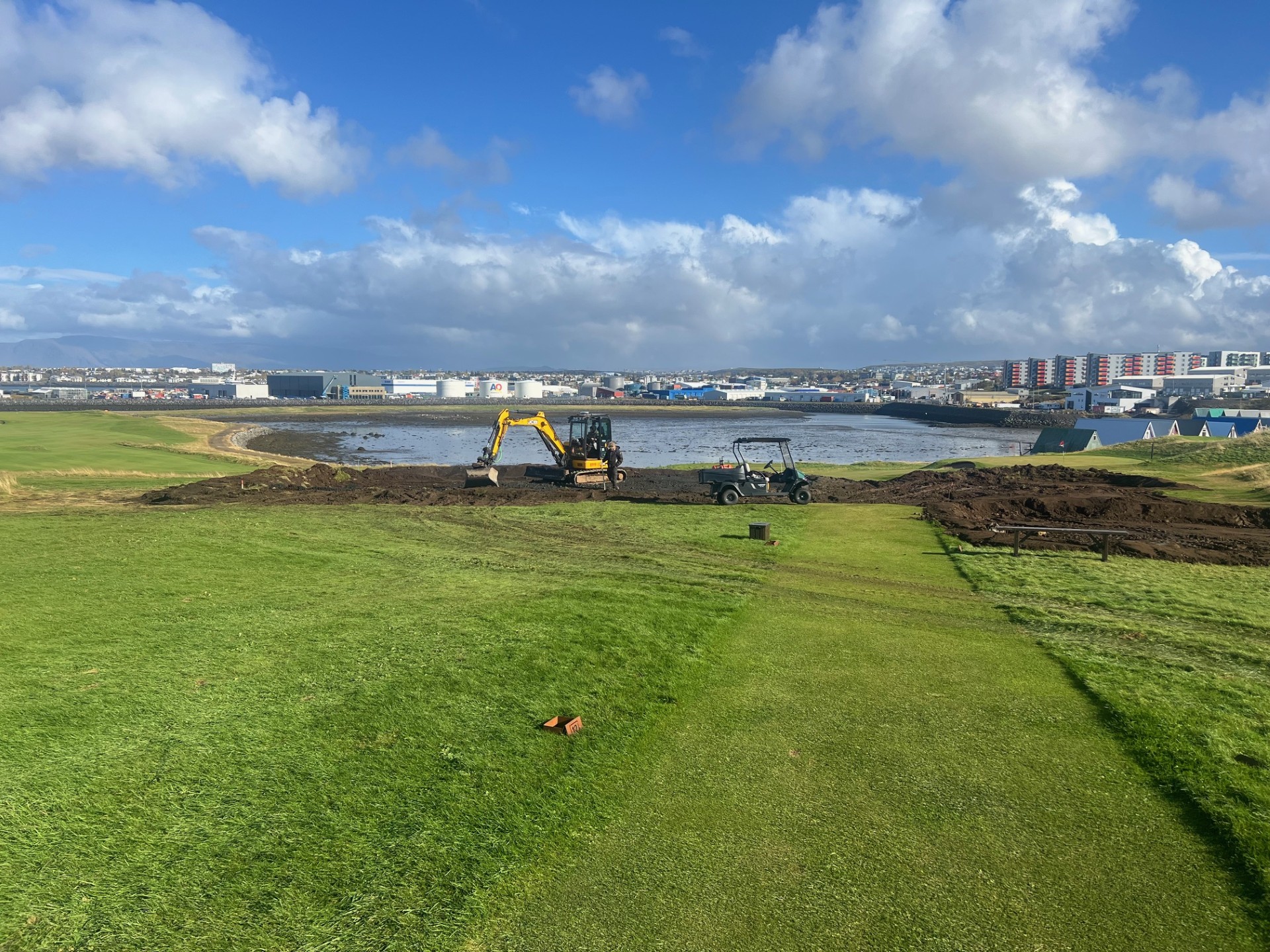 Nú hafa starfsmenn Keilis hafið vinnu við 3 nýja teiga á 9. braut Sveinskotsvallar. Framkvæmdin er í stærri kantinum og verða teigarnir stækkaði umtalsvert.